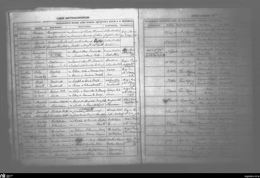Ballymore Eustace; County of Kildare, Wicklow; Archdiocese of Dublin. Marriages, Aug. 1876 to June 1877
