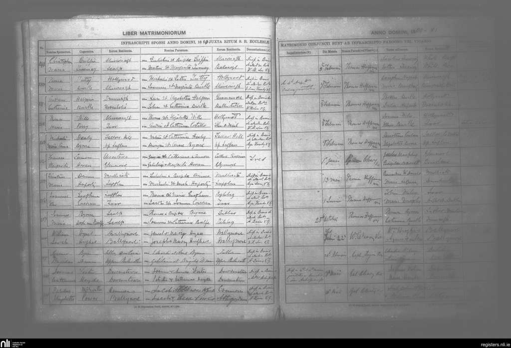 Ballymore Eustace; County of Kildare, Wicklow; Archdiocese of Dublin. Marriages, Feb. 1880 to Oct. 1880