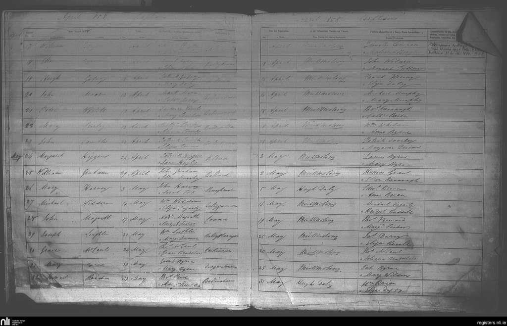 Kilbride; County of Wicklow; Archdiocese of Dublin. Baptisms, Apr. 1858 to May 1858