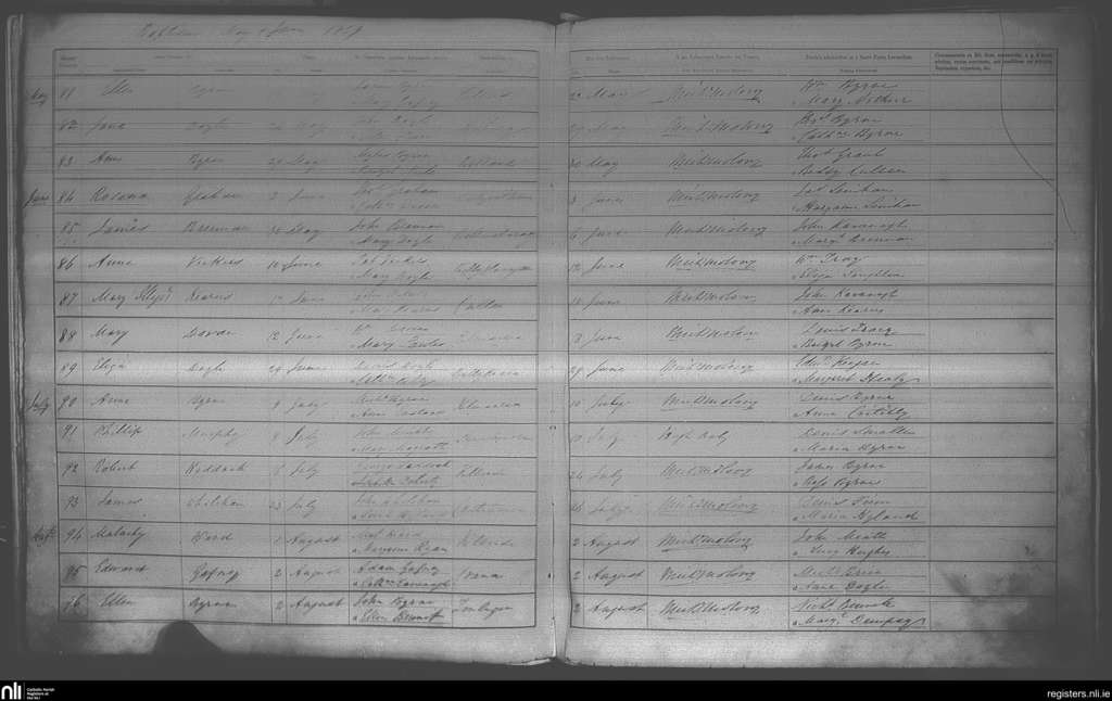 Kilbride; County of Wicklow; Archdiocese of Dublin. Baptisms, May 1859 to Aug. 1859