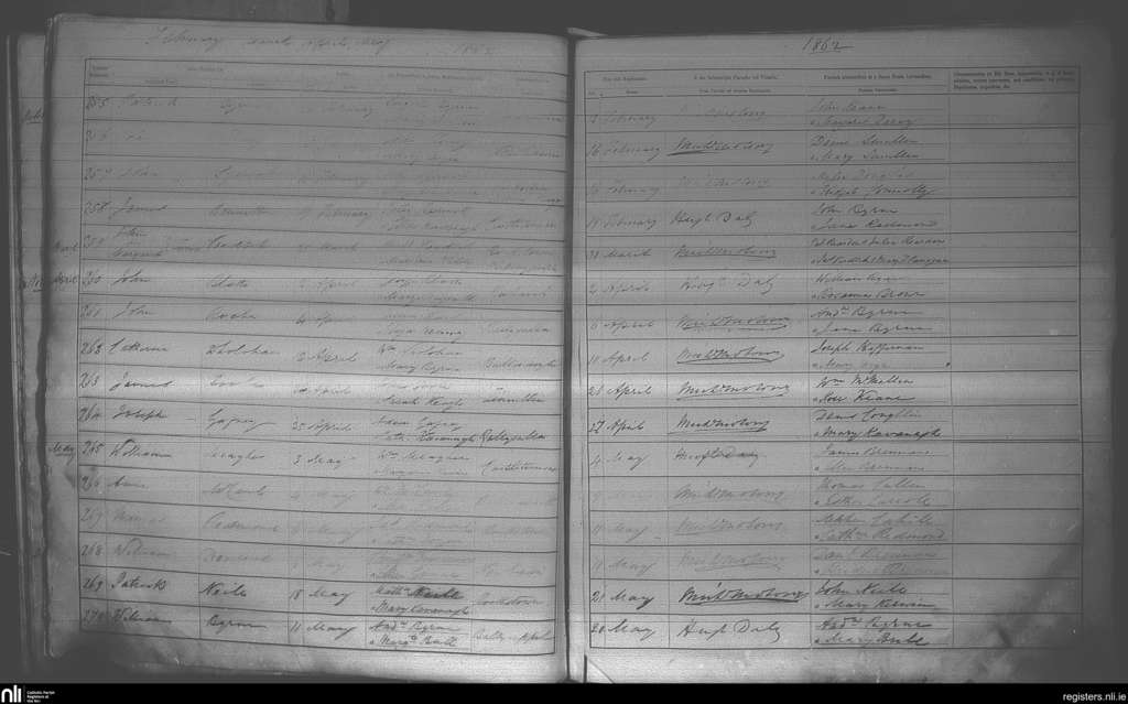 Kilbride; County of Wicklow; Archdiocese of Dublin. Baptisms, Feb. 1862 to May 1862
