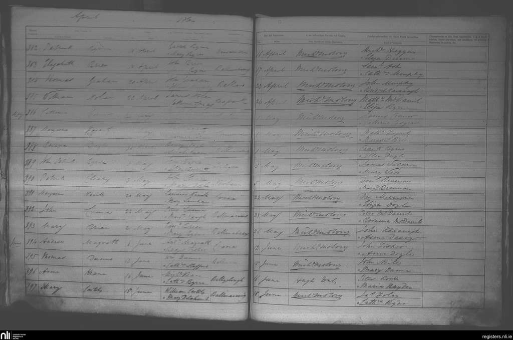 Kilbride; County of Wicklow; Archdiocese of Dublin. Baptisms, Apr. 1864 to June 1864