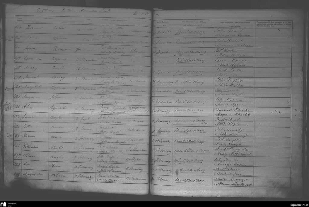 Kilbride; County of Wicklow; Archdiocese of Dublin. Baptisms, Oct. 1864 to Feb. 1865