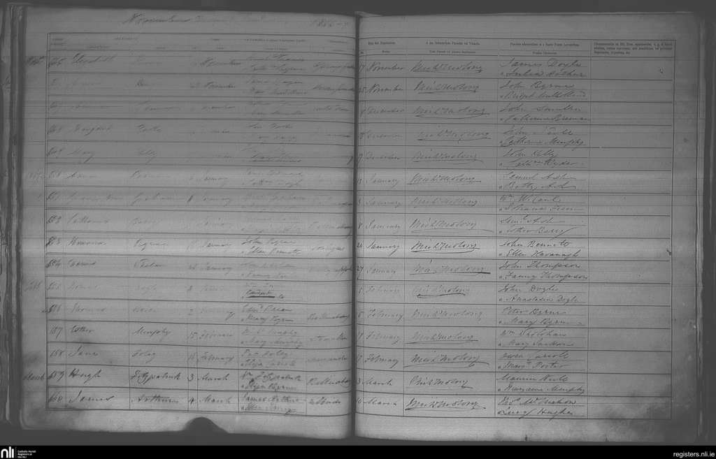 Kilbride; County of Wicklow; Archdiocese of Dublin. Baptisms, Nov. 1866 to Mar. 1867