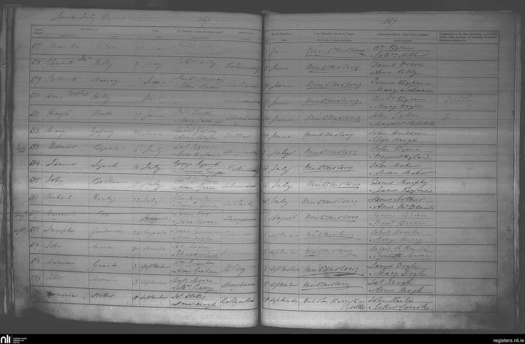 Kilbride; County of Wicklow; Archdiocese of Dublin. Baptisms, June 1867 to Sep. 1867