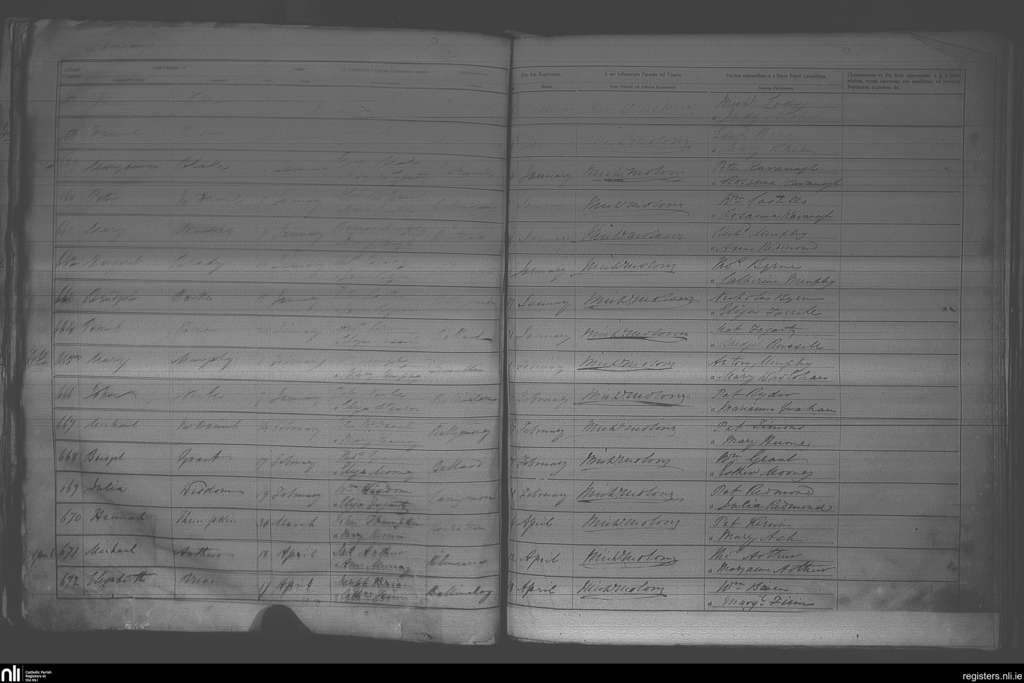 Kilbride; County of Wicklow; Archdiocese of Dublin. Baptisms, Jan. 1869 to Apr. 1869