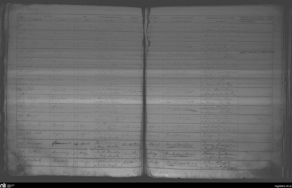 Kilbride; County of Wicklow; Archdiocese of Dublin. Baptisms, Jan. 1871 to May 1871