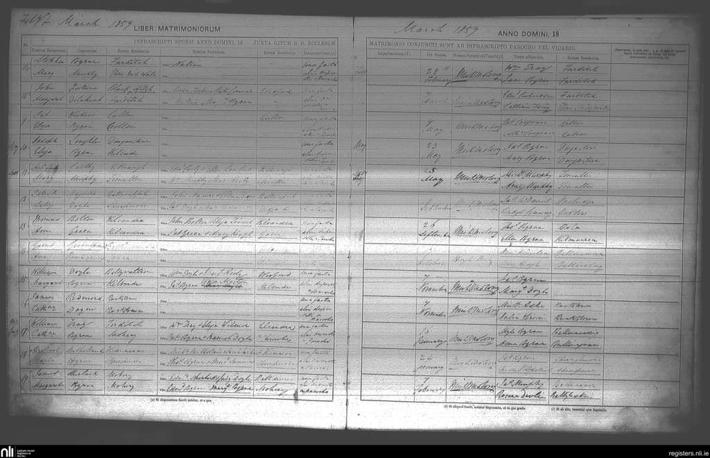 Kilbride; County of Wicklow; Archdiocese of Dublin. Marriages, Feb. 1859 to Feb. 1860