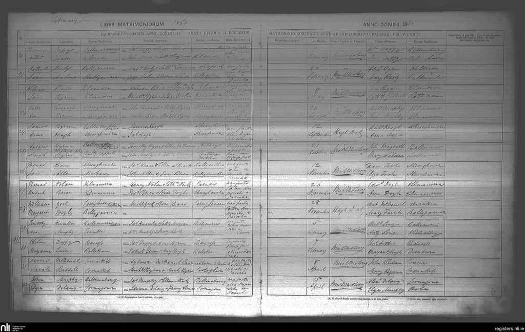 Kilbride; County of Wicklow; Archdiocese of Dublin. Marriages, Feb. 1860 to Apr. 1861