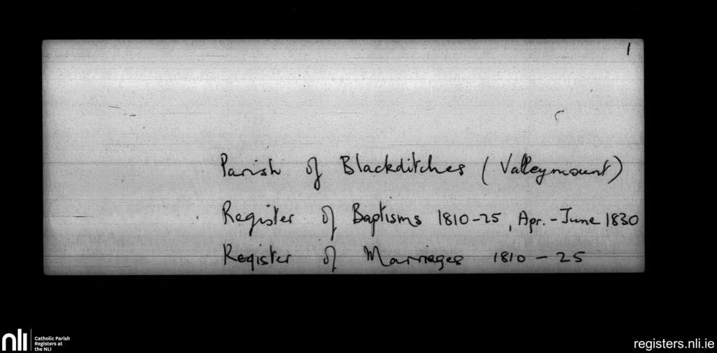Blackditches; Contae Wicklow; Ard-Deoise Dublin. Baptisms, Marriages