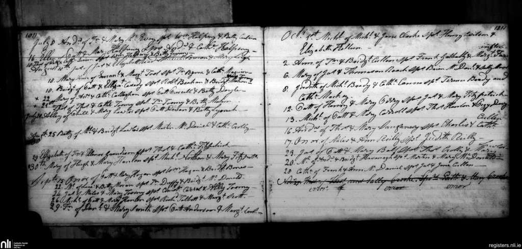 Blackditches; County of Wicklow; Archdiocese of Dublin. Baptisms, July 1811 to Oct. 1811