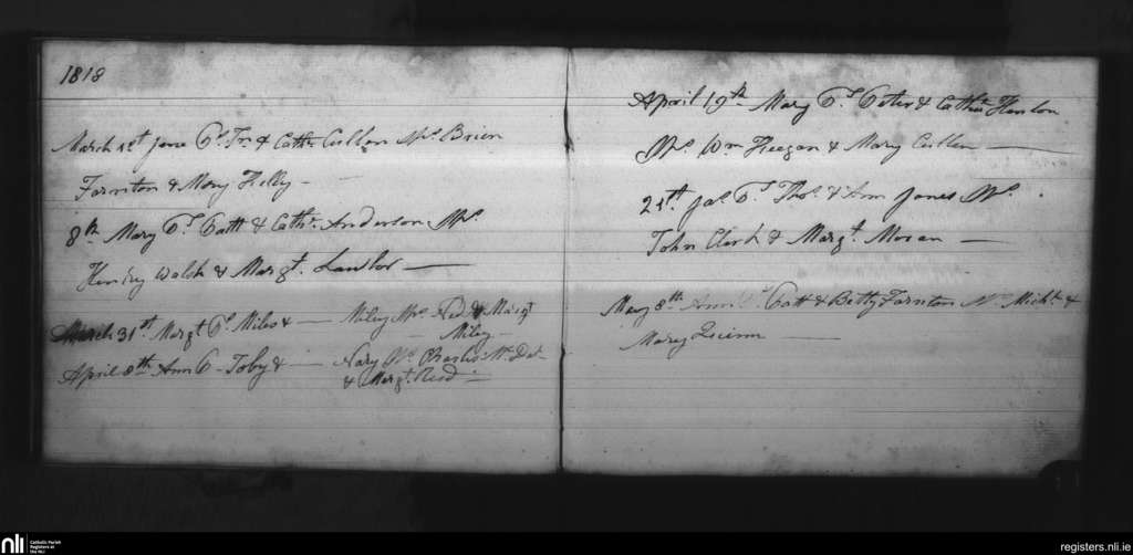 Blackditches; County of Wicklow; Archdiocese of Dublin. Baptisms, Mar. 1818 to May 1818