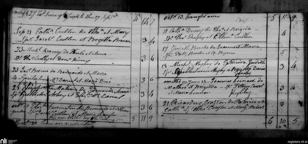 Blackditches; County of Wicklow; Archdiocese of Dublin. Baptisms, Sep. 1827 to Oct. 1827