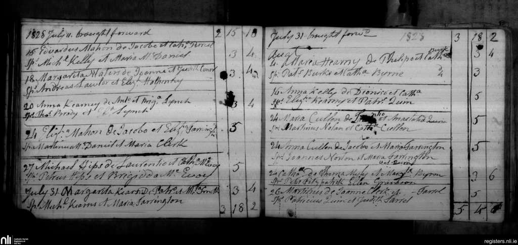 Blackditches; County of Wicklow; Archdiocese of Dublin. Baptisms, July 1828 to Aug. 1828