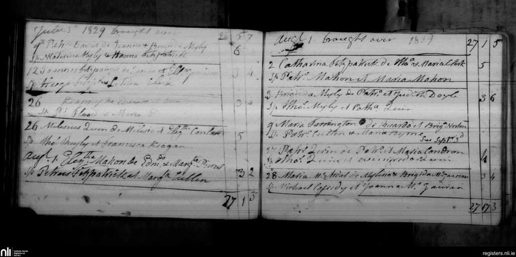 Blackditches; County of Wicklow; Archdiocese of Dublin. Baptisms, July 1829 to Aug. 1829