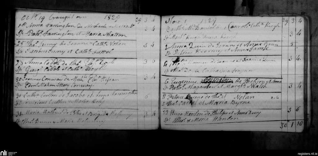 Blackditches; County of Wicklow; Archdiocese of Dublin. Baptisms, Oct. 1829 to Nov. 1829