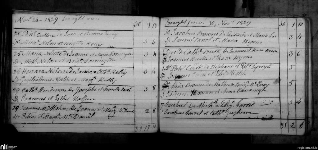 Blackditches; County of Wicklow; Archdiocese of Dublin. Baptisms, Nov. 1829 to Dec. 1829