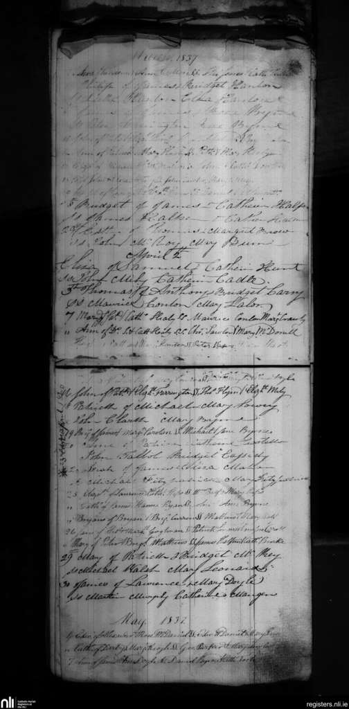 Blackditches; County of Wicklow; Archdiocese of Dublin. Baptisms, Mar. 1837 to May 1837