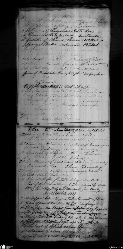 Blackditches; County of Wicklow; Archdiocese of Dublin. Baptisms, July 1837 to Sep. 1837