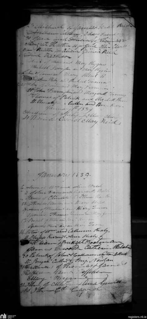 Blackditches; County of Wicklow; Archdiocese of Dublin. Baptisms, Dec. 1838 to Jan. 1839