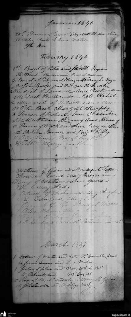 Blackditches; County of Wicklow; Archdiocese of Dublin. Baptisms, Jan. 1840 to Mar. 1840
