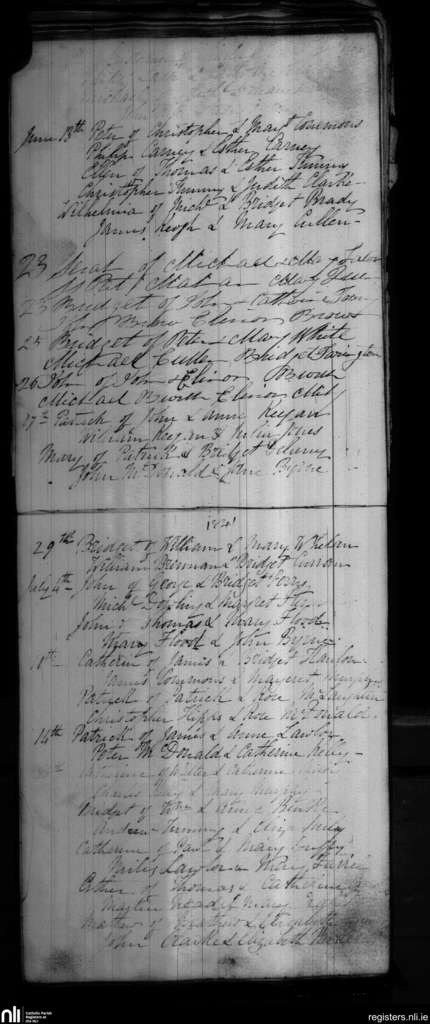Blackditches; County of Wicklow; Archdiocese of Dublin. Baptisms, June 1841 to July 1841