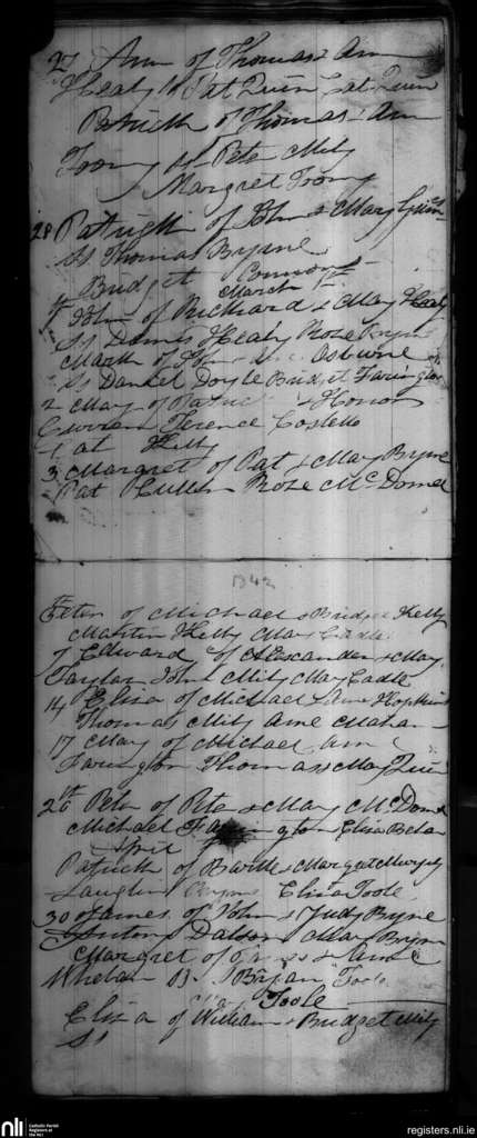 Blackditches; County of Wicklow; Archdiocese of Dublin. Baptisms, Feb. 1842 to Apr. 1842