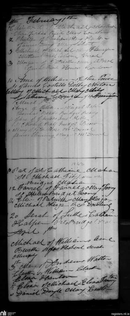 Blackditches; County of Wicklow; Archdiocese of Dublin. Baptisms, Feb. 1843 to Apr. 1843