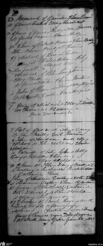 Blackditches; County of Wicklow; Archdiocese of Dublin. Baptisms, July 1843 to Sep. 1843