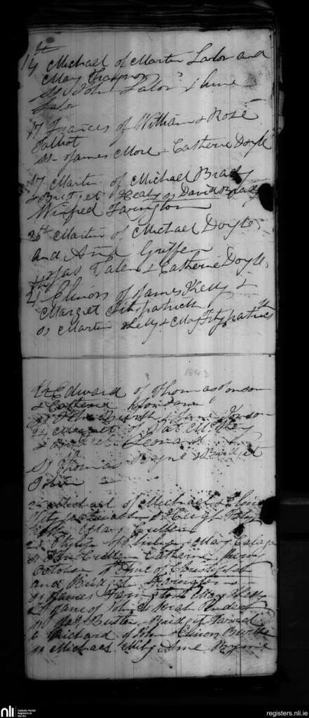 Blackditches; County of Wicklow; Archdiocese of Dublin. Baptisms, Sep. 1843 to Oct. 1843