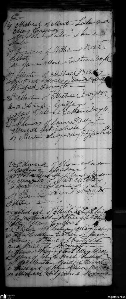 Blackditches; County of Wicklow; Archdiocese of Dublin. Baptisms, Sep. 1843 to Oct. 1843