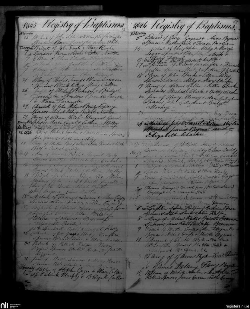 Blackditches; County of Wicklow; Archdiocese of Dublin. Baptisms, Nov. 1845 to Mar. 1846