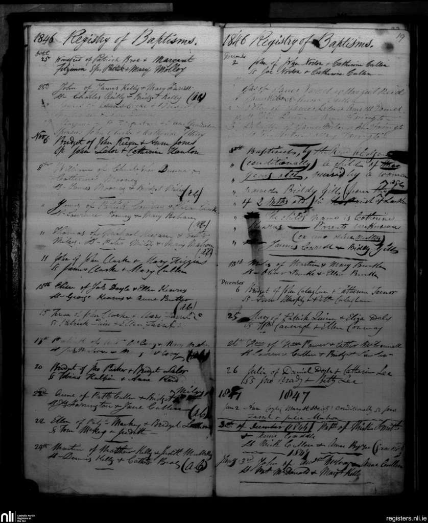 Blackditches; County of Wicklow; Archdiocese of Dublin. Baptisms, Oct. 1846 to Jan. 1847
