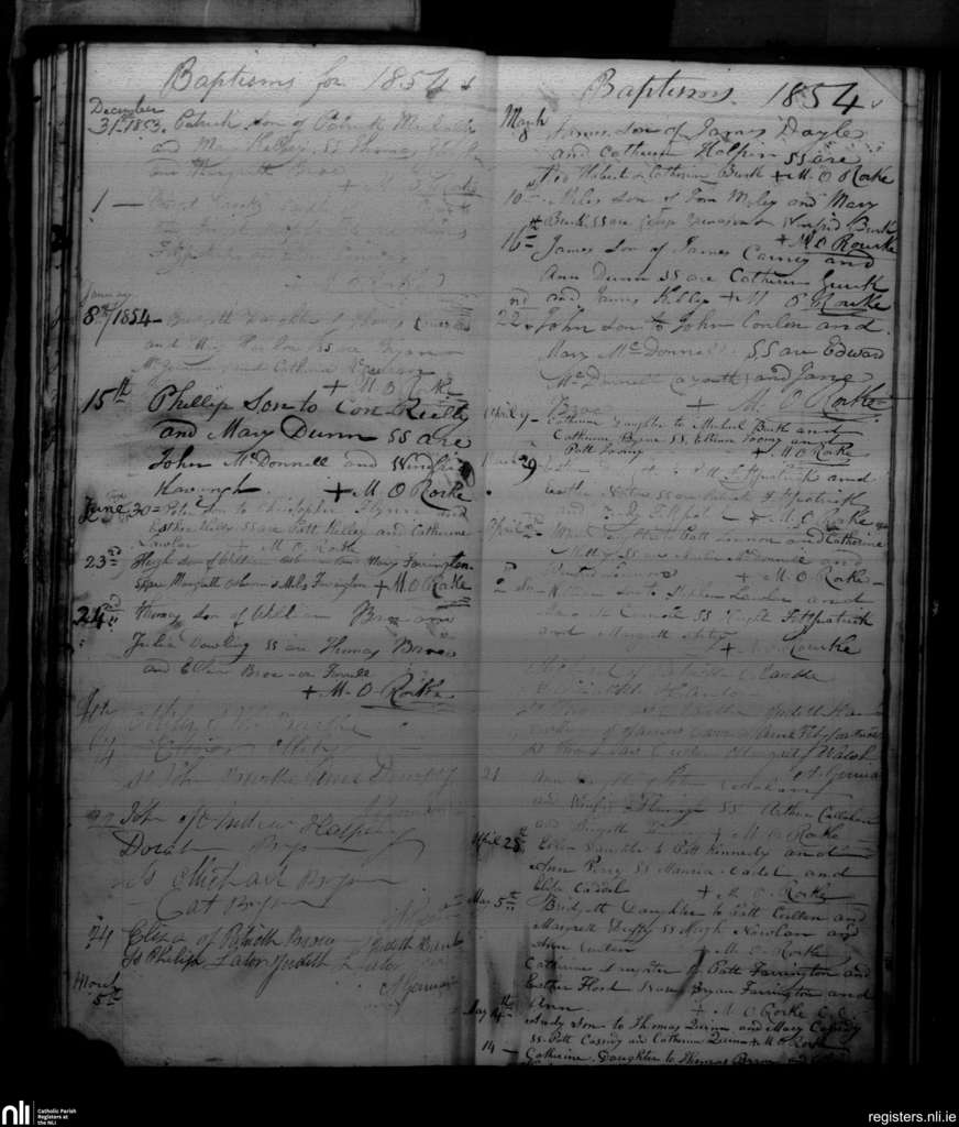 Blackditches; County of Wicklow; Archdiocese of Dublin. Baptisms, Dec. 1853 to June 1854