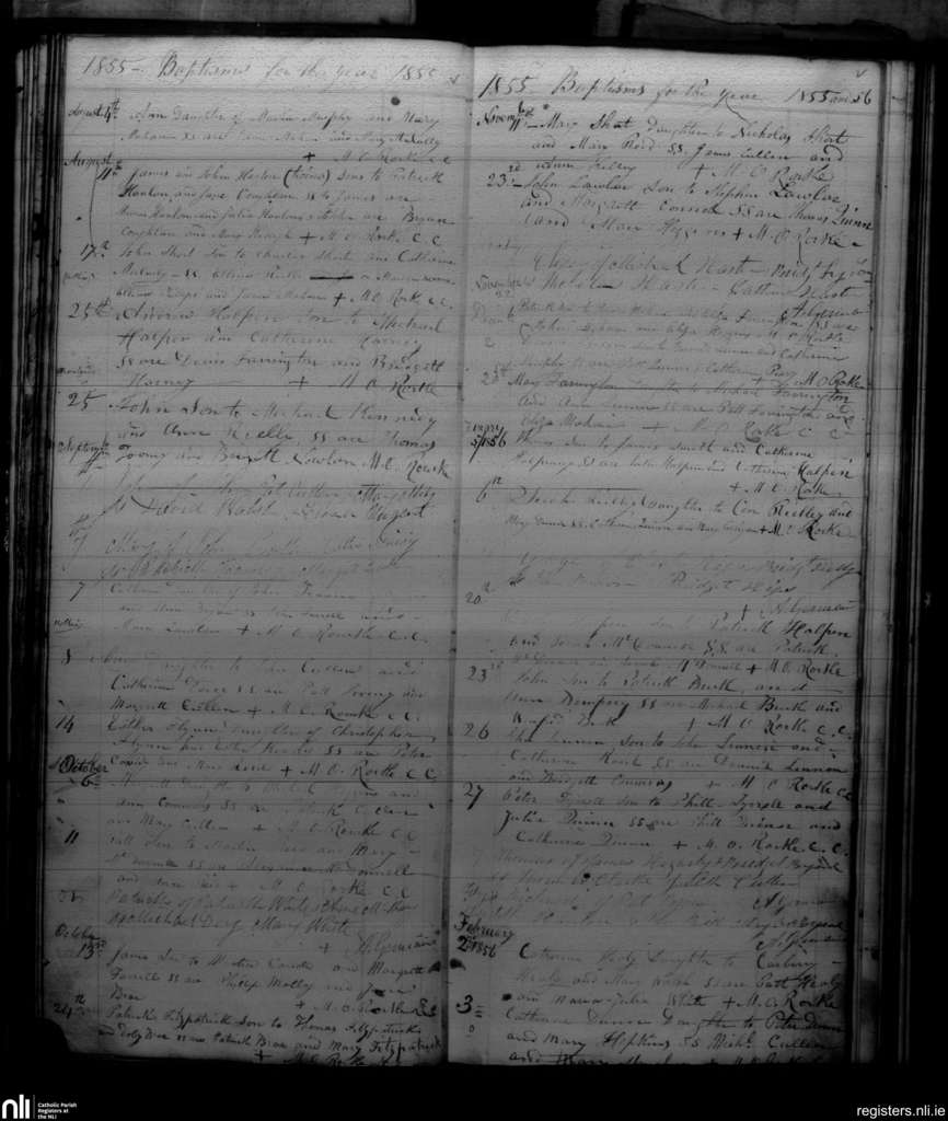 Blackditches; County of Wicklow; Archdiocese of Dublin. Baptisms, Aug. 1855 to Feb. 1856