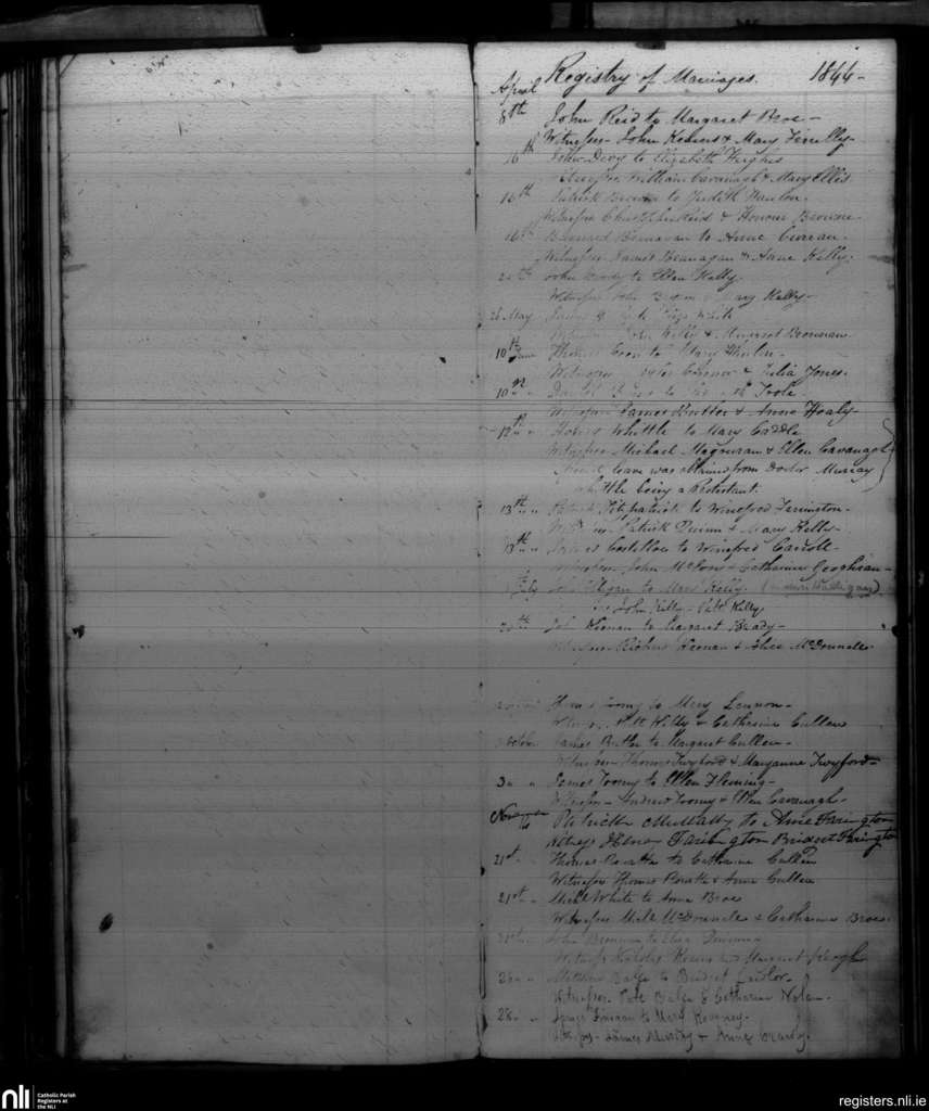 Blackditches; County of Wicklow; Archdiocese of Dublin. Marriages, Apr. 1844 to Nov. 1844