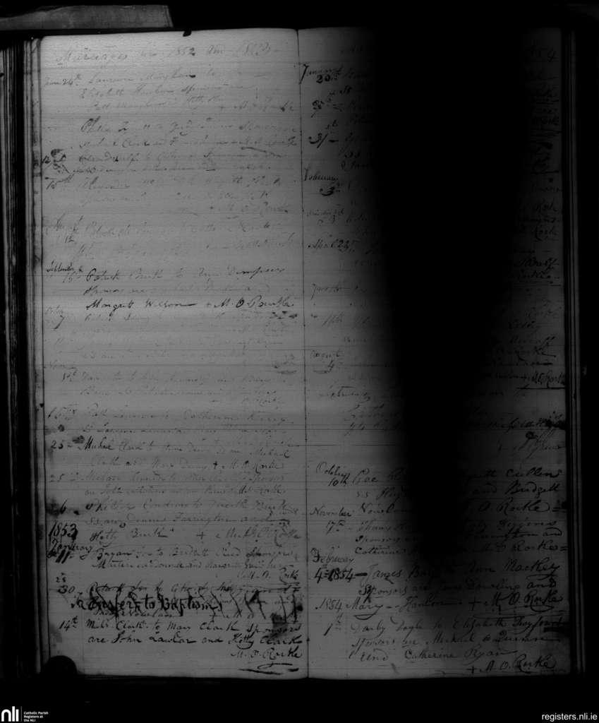 Blackditches; County of Wicklow; Archdiocese of Dublin. Marriages, June 1852 to Feb. 1854