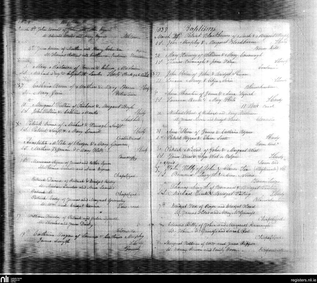 Blanchardstown; County of Dublin; Archdiocese of Dublin. Baptisms, Mar. 1839 to Apr. 1839