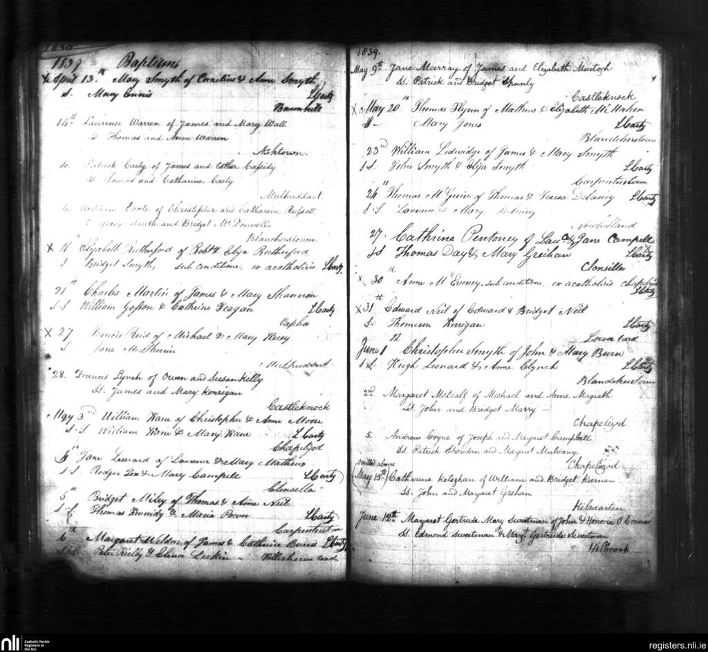 Blanchardstown; County of Dublin; Archdiocese of Dublin. Baptisms, Apr. 1839 to June 1839