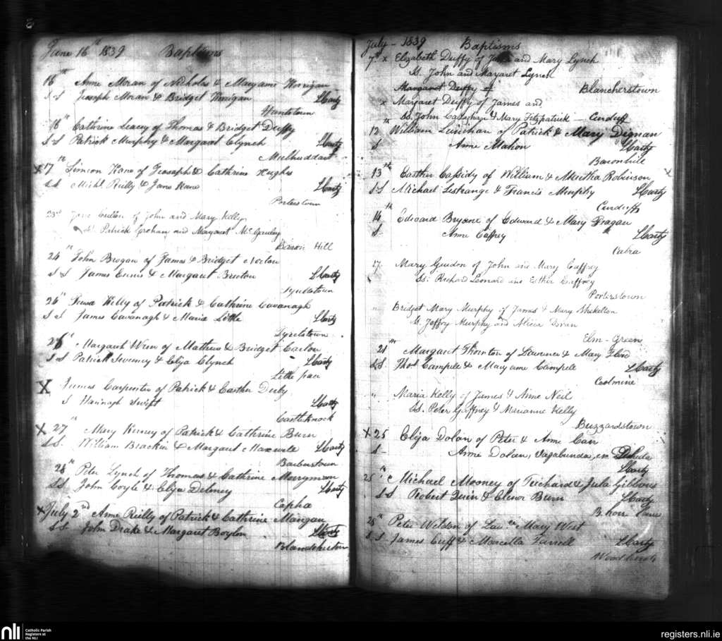 Blanchardstown; County of Dublin; Archdiocese of Dublin. Baptisms, June 1839 to July 1839