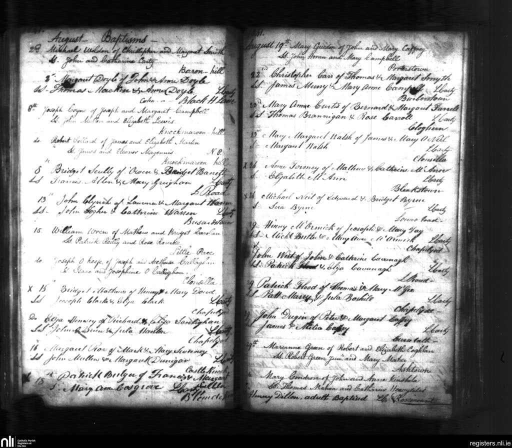 Blanchardstown; County of Dublin; Archdiocese of Dublin. Baptisms, Aug. 1841