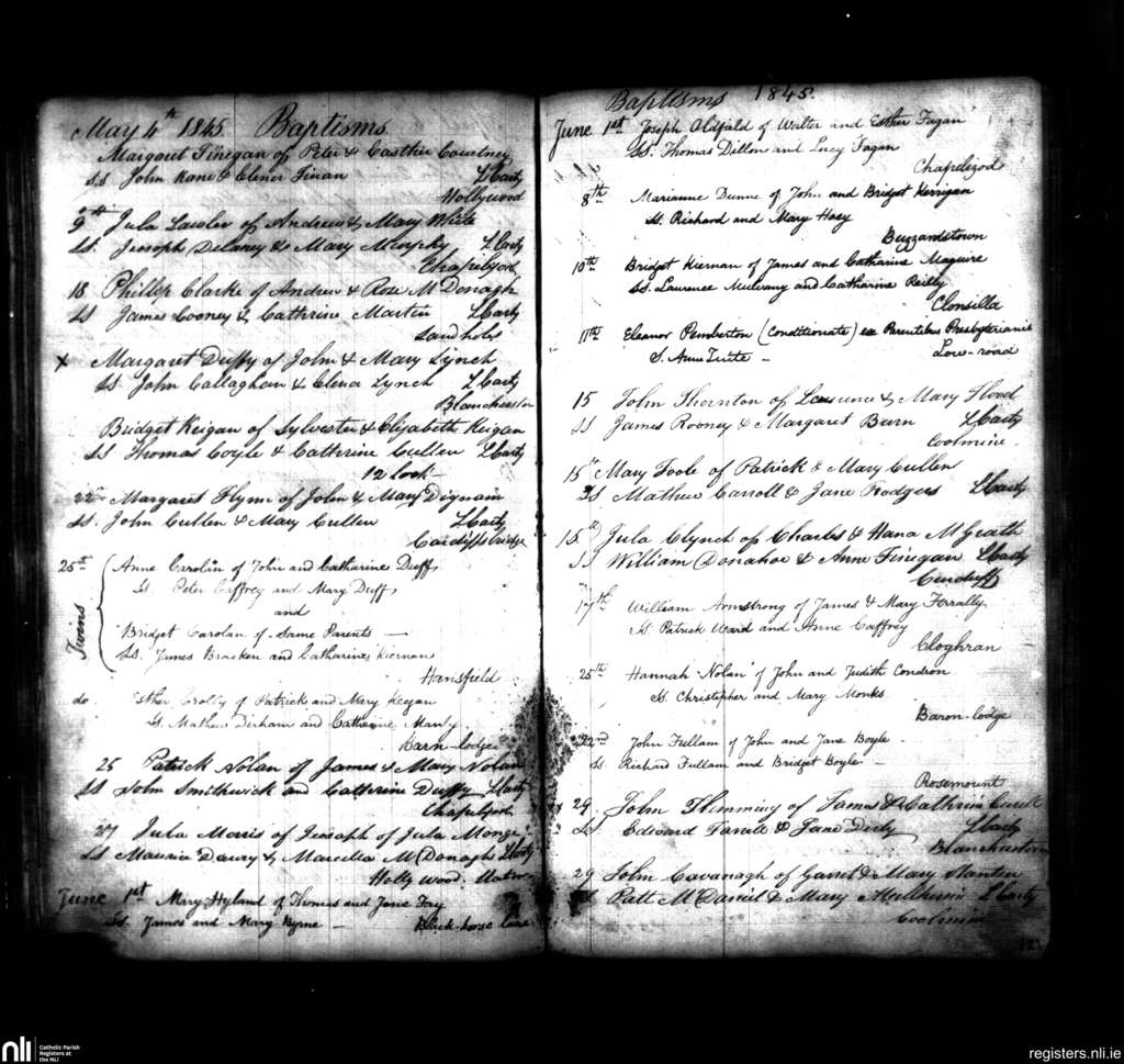 Blanchardstown; County of Dublin; Archdiocese of Dublin. Baptisms, May 1845 to June 1845