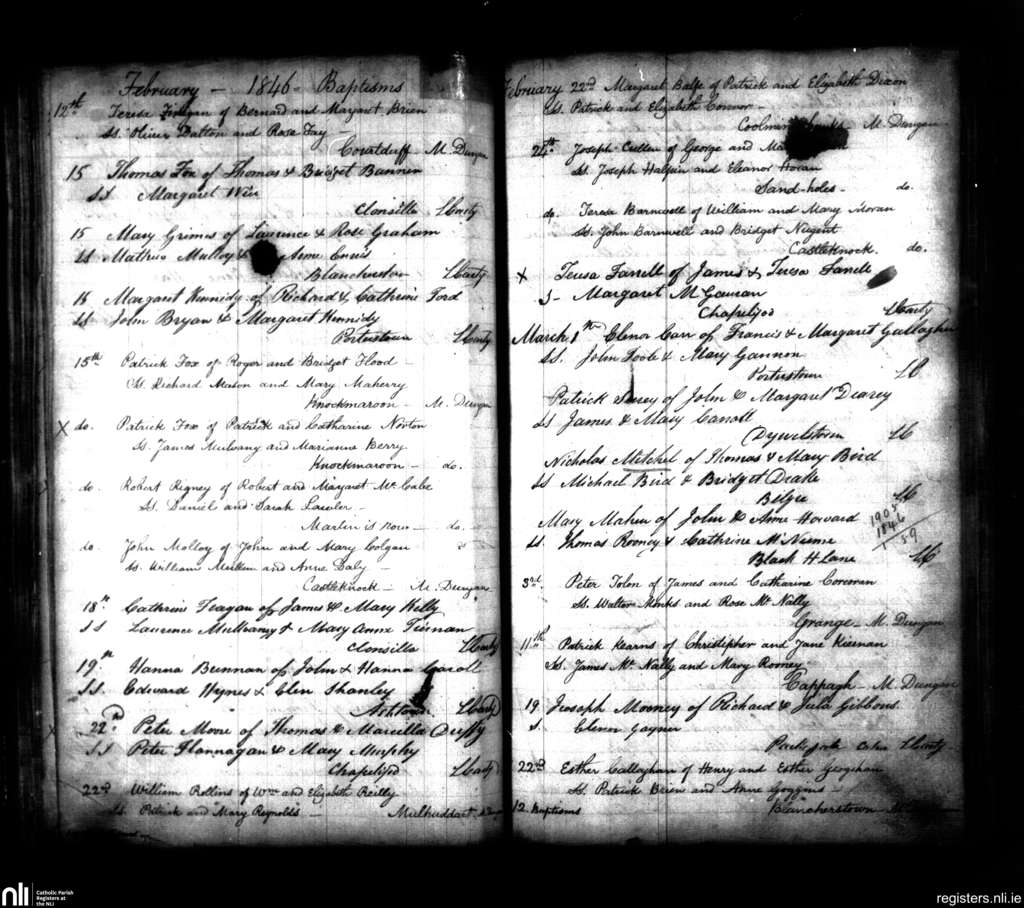 Blanchardstown; County of Dublin; Archdiocese of Dublin. Baptisms, Feb. 1846 to Mar. 1846