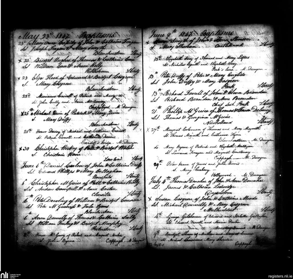Blanchardstown; County of Dublin; Archdiocese of Dublin. Baptisms, May 1847 to July 1847