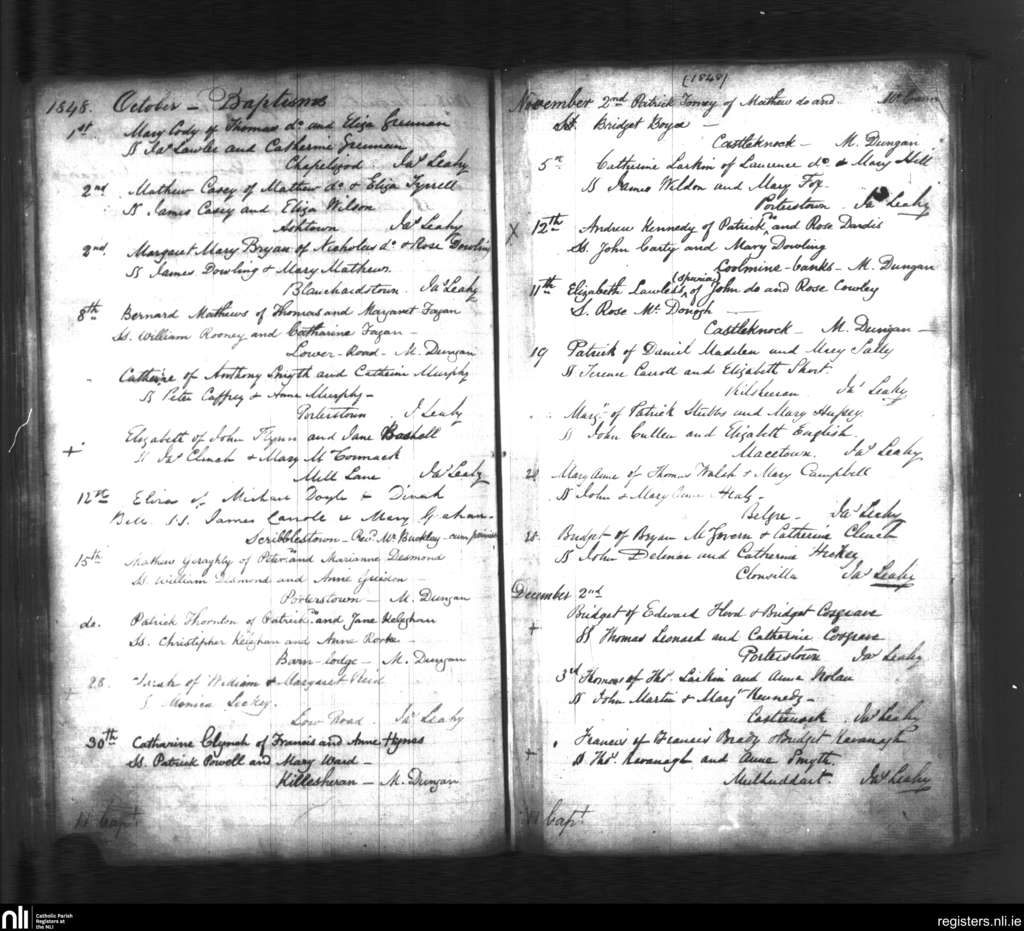 Blanchardstown; County of Dublin; Archdiocese of Dublin. Baptisms, Oct. 1848 to Dec. 1848