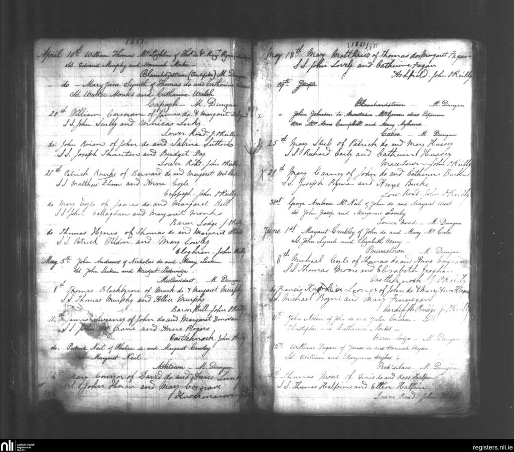 Blanchardstown; County of Dublin; Archdiocese of Dublin. Baptisms, Apr. 1851 to June 1851