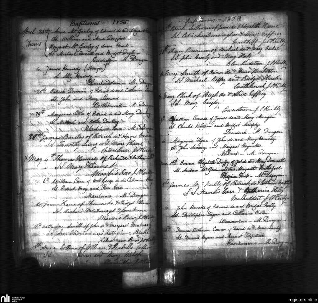 Blanchardstown; County of Dublin; Archdiocese of Dublin. Baptisms, Apr. 1855 to June 1855