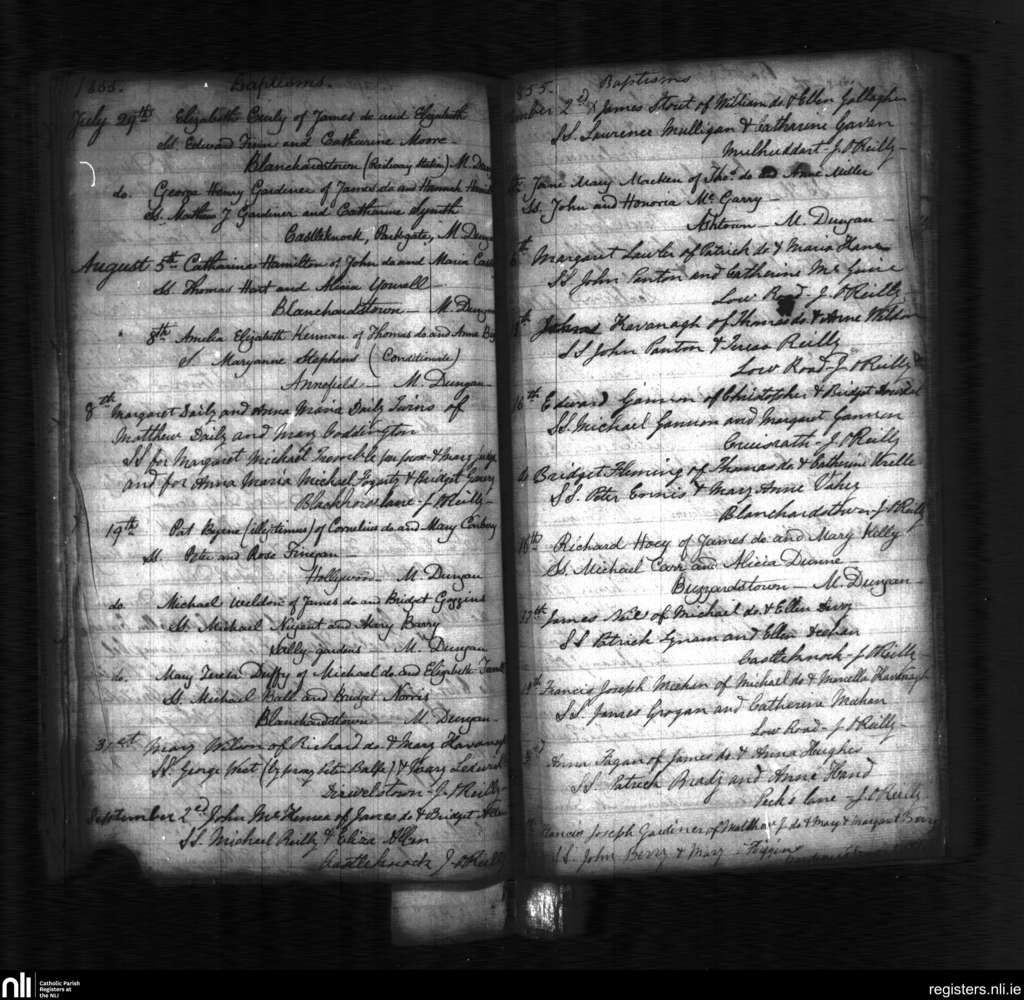 Blanchardstown; County of Dublin; Archdiocese of Dublin. Baptisms, July 1855 to Sep. 1855