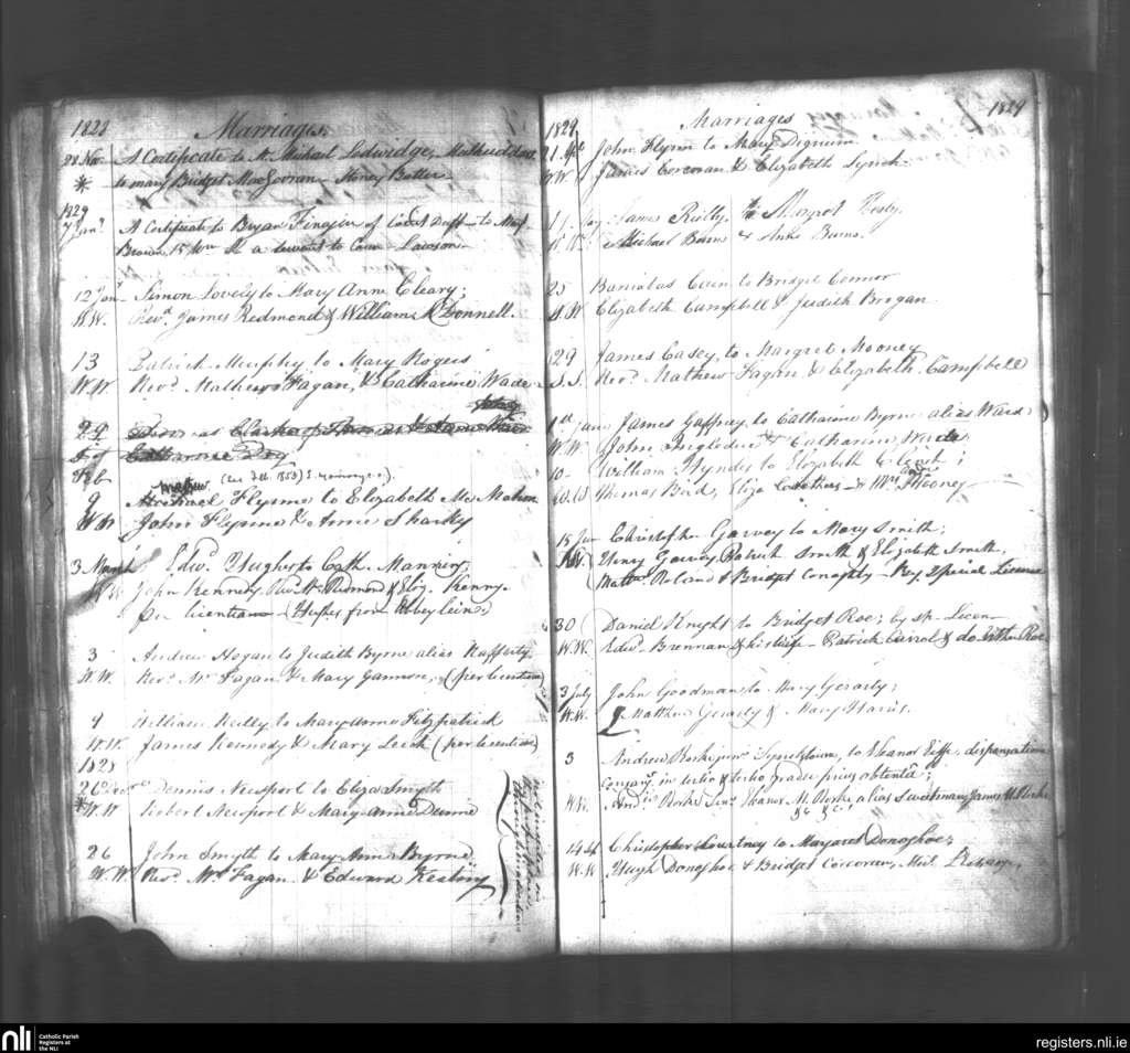 Blanchardstown; County of Dublin; Archdiocese of Dublin. Marriages, Nov. 1828 to Sep. 1829