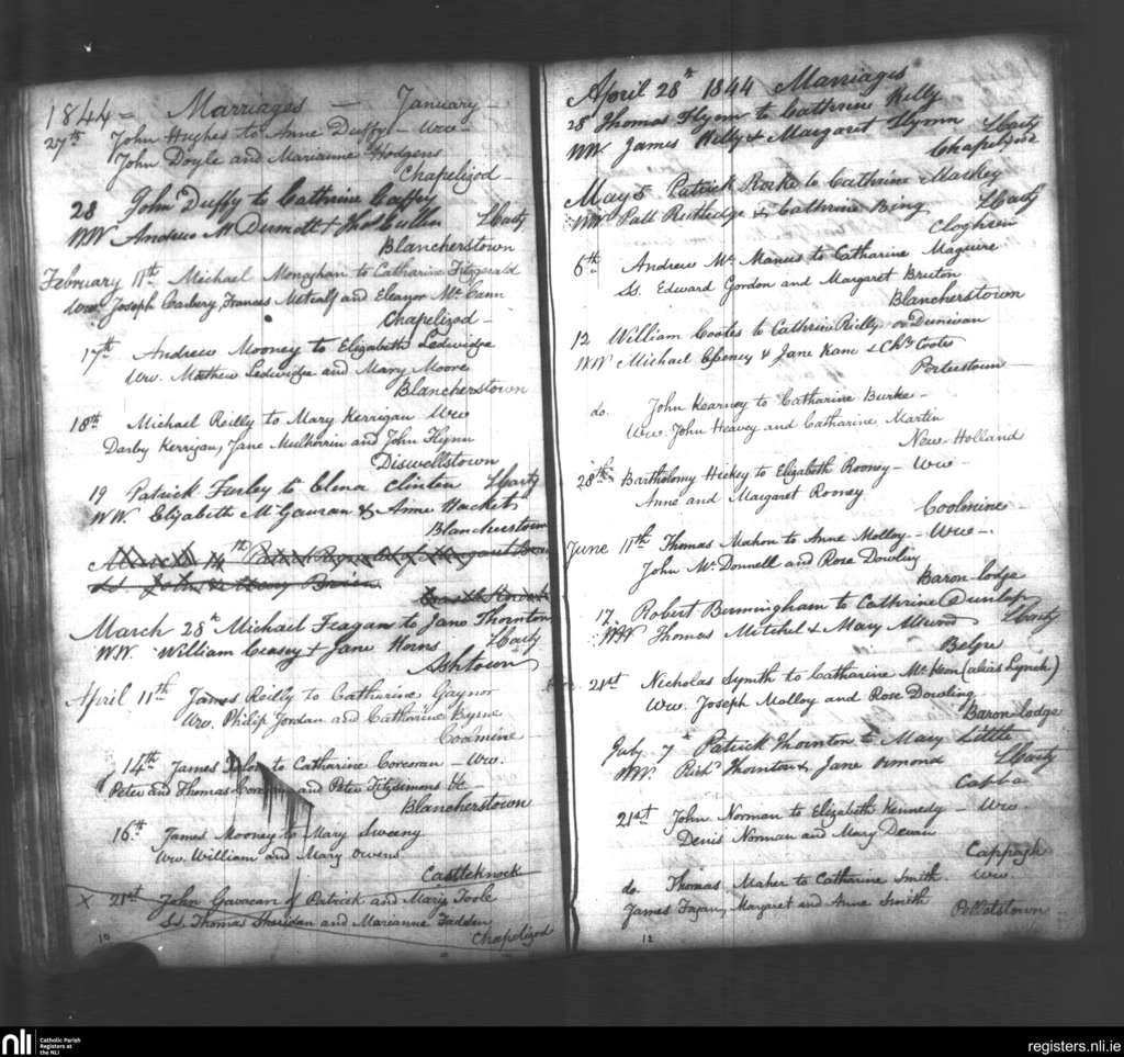 Blanchardstown; County of Dublin; Archdiocese of Dublin. Marriages, Jan. 1844 to July 1844
